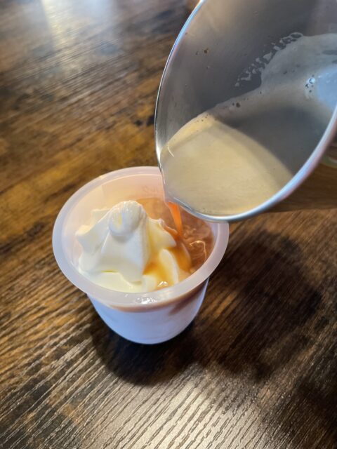 容器が耐熱なので、お好きなタイミングで熱々のコーヒー、紅茶を入れて食べるのもオススメです。お家だからこそできるオリジナルのアレンジソフトが楽しめます。
